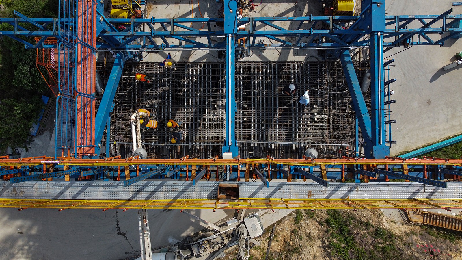 跨沪陕高速公路立交特大桥,箱梁采用单箱双室直腹板箱型截面,梁体共分30段,箱梁悬臂浇筑最重块段为23#块,重量为504.56t。兴土股份根据桥梁施工方案及现场施工环境,不断优化模板设计与挂篮施工方案,在满足跨越要求的前提下,保障项目能够安全、高效地进行。