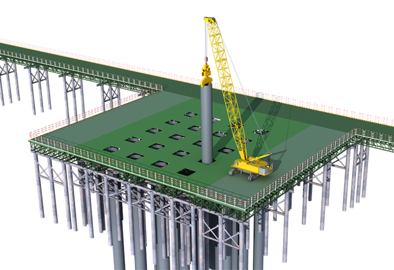 作为水上桥梁下部结构的桩基础的钻孔施工作业的专用平台,服务于桩基成孔、钢筋笼下放和混凝土浇筑等施工过程。