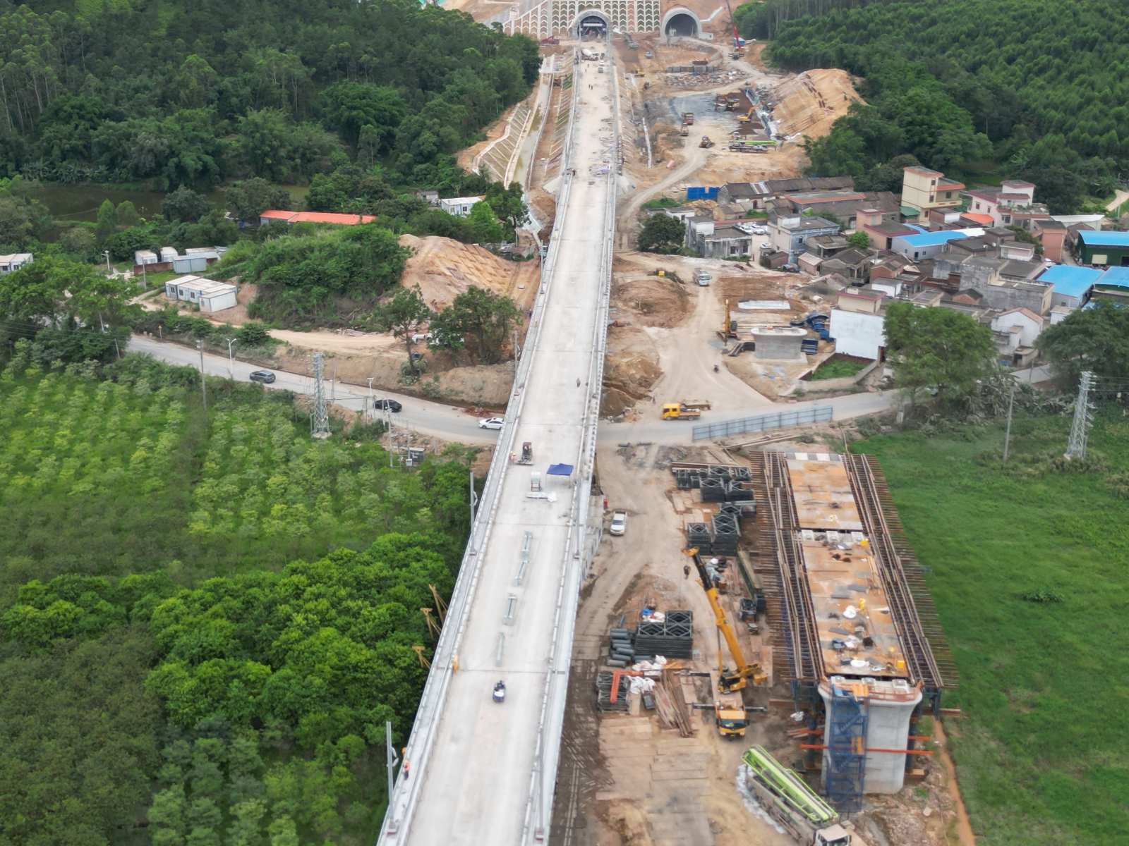 珠肇高铁江机段8标位于肇庆市高要区回龙镇和蛟塘境内,承建单位为中铁二局,线路全长9.45km,与广湛高铁交叉共建段有桥梁共建段和机场隧道。